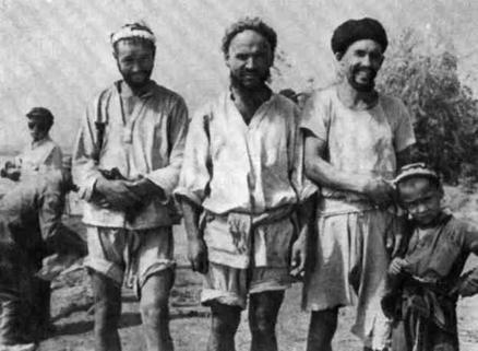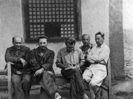 Участники Куньлунъской экспедиции 1959 года (справа налево: почвовед В. А. Носин, геоморфолог Б. А. Фёдорович, ботаник А. А. Юнатов, гидролог Н. Т. Кузнецов и автор)