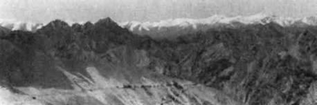 Мы долго бродили глубокими и длинными ущельями, стараясь пробраться к вершине горы. Одни ущелья внезапно кончались, другие бесконечно ветвились, и только к закату солнца мы наконец попали на главную вершину высотой в 2702 метра. Отсюда Гоби была видна не только на юг; северные пустыни также легко обозревались вечерней порой, когда утихали ветры и воздух становился прозрачным. С горы Атас в далёкой синеве мы увидели снеговые вершины