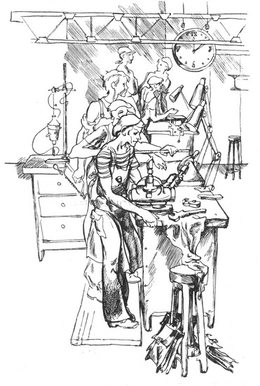 Звонок позвал на первое занятие по технологии металлов. Потом еще звонки, звонки, чередующиеся занятия по технике измерения, по физике, по литературе, по теории слесарного дела, где снова все о металле: шабрение, лужение, притирка, клепка, рубка металла…