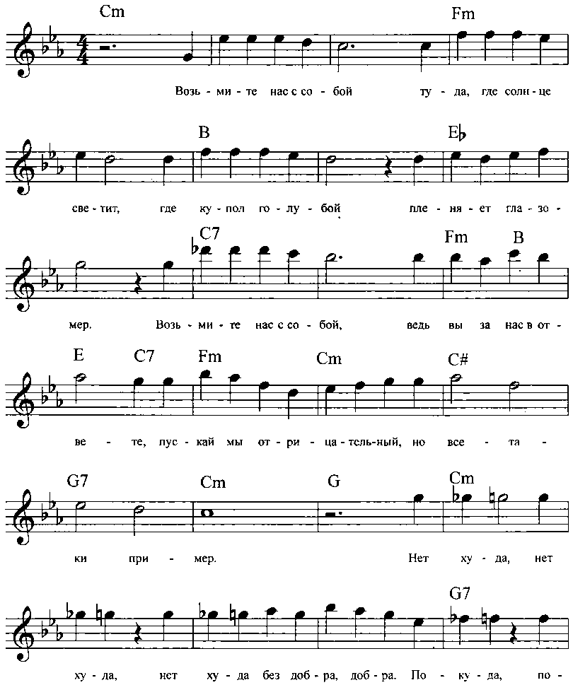 Нотное приложение: песни композиторов Теодора Ефимова и Якова Казьянского.
