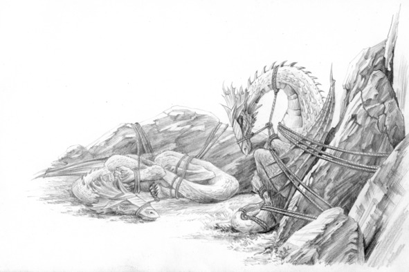 В драконью шкуру облачив, он принесет его на пир.