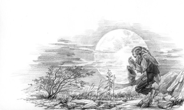 Когда луна поднялась из-за горной гряды и осветила поляну вокруг костра, ночные плаксы собрали свои драгоценности и исчезли. Эрто и Йокку забеспокоились. И не зря. Из-за ближнего камня появился козлоногий. Он был стар и потрепан. Глаз закрывала черная повязка. Было видно, что он опасается. Соседство двух драконов не доставляло ему удовольствия. Козлоногий действовал осторожно. В его мешок попали несколько алмазов, оставленных ночными плаксами, да плошки из-под рагу, которые драконы небрежно бросили после ужина. Он с завистью посмотрел на меч и лук королевы, но она положила их рядом с собой, а пробраться к ней между драконами козлоногий не решился. Поняв, что ему больше нечем поживиться, он исчез.