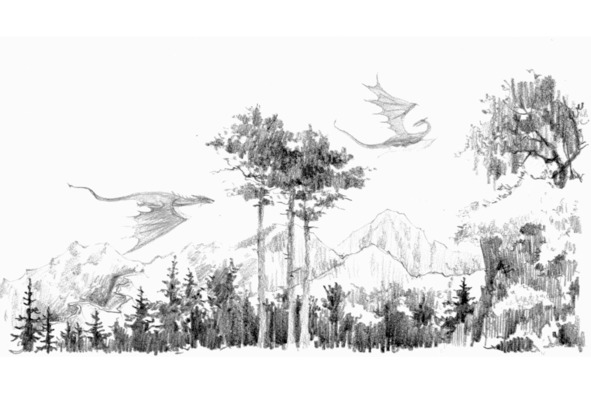 В полночь Эрто и Йоккуэль заступили на дежурство. Взглянув в бирюзовое зеркало, они с удивлением обнаружили Туолу, спящую у костра в компании двух драконов.