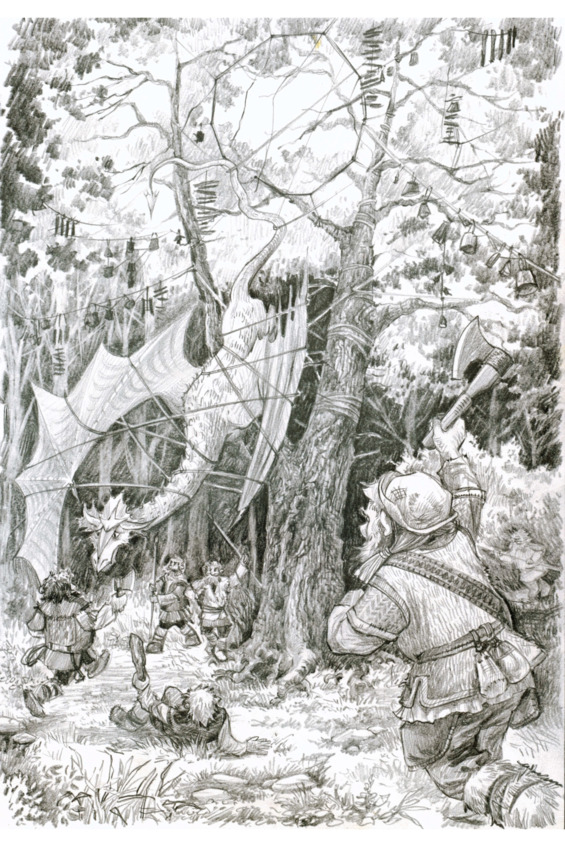 Грызли удивились. Никогда они еще не слышали, чтобы дракон молил о пощаде. Обычно драконы извергают огонь из своей пасти и схватить их трудно. Их удивление еще более возросло, когда на поляну рядом с ловушкой приземлился второй дракон и с его спины сошел маленький эльф. Увидев знаки вестников, грызли склонили колени и головы. Понадобилось немало времени, чтобы поведать местным жителям о грозящей опасности. Да и Правого, который сильно запутал веревки, выручали до самого вечера. Было решено разбить лагерь и заночевать. Эрто отправил драконов за хворостом и принялся готовить ужин. Близнецы, как узнали, что их ждет эльфийское рагу, ни на шаг не отходили от костра. Когда ужин был готов и рагу разлито по плошкам, они накинулись на него с таким шумом, что прибежали жители деревни. Узнав, что все в порядке, и с завистью взглянув на пару симпатичных драконьих хвостов, грызли сообщили, что известили всех соседей, а завтра направят в Эльфенгор своих представителей.