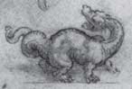Штудии движений кошки и поз. Фрагмент с изображением дракона. Виндзор, Королевская библиотека