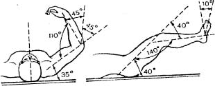Оно заключается в том, что конечность должна быть несколько согнута – это положение отражает естественное для человека некоторое преобладание тонуса мышц-сгибателей. В целях обеспечения хорошего расслабления нижних конечностей при положении массируемого на животе ему под голеностопные суставы подкладывают валик, в положении же его на спине валик подкладывают под коленные суставы.