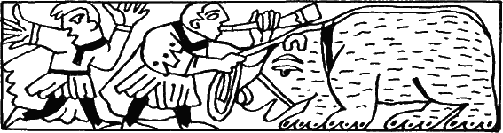 На воротах сидел апатично и неподвижно высокорослый сеорл, а за ним стояла группа поденщиков, опираясь на косы и молотильные цепы. Мрачно и злобно смотрели они на приближающуюся кавалькаду. Здоровые, свежие лица их и опрятная одежда говорили, что им живется недурно. Действительно, поденщики были в то время гораздо лучше обеспечены, чем теперь, в особенности если они работали на богатого англосаксонского тана.