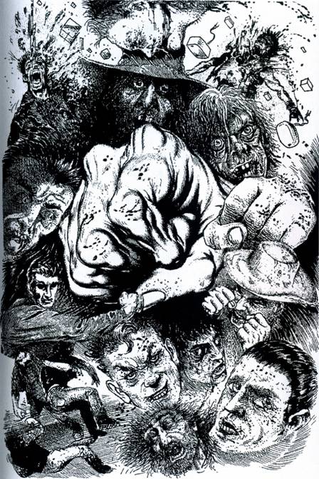 ... последний вышиб деревенщине несколько зубов, удачно заехав коленом тому в челюсть. Хелтон и Арги сошлись в кулачном бою, громя друг другу рожи огромными кулачищами. Но когда Арги протаранил Хелтона головой в живот, тот упал. Это дало мафиози время окончательно избавиться от громоздкого пальто.
