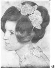 Илл. 45, 46. Варианты вечерних нарядных причесок с декоративным украшением.