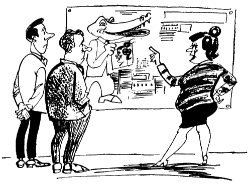 Оскорбленная «юрисконсультша» тут же, не отходя от стенгазеты, настрочила заявление в прокуратуру, требуя привлечь редактора стенного «Крокодила» к уголовной ответственности за поношение ее юридического достоинства.