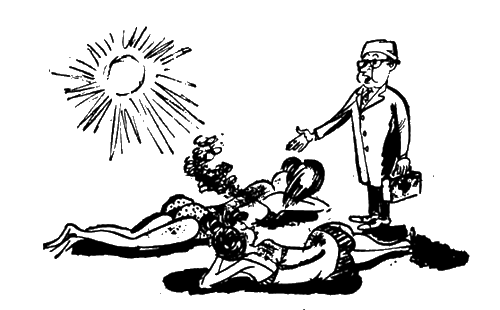 Моя давняя знакомая Матильда Витальевна поступает наоборот: сначала она отправляется на дикий пляж, где жарится до того, что в воздухе густо пахнет жареным и хочется забить тревогу: вызвать пожарную команду. Лишь после этого Матильда Витальевна перебирается на лечебный пляж и доверяет дальнейший загар медицинскому контролю.