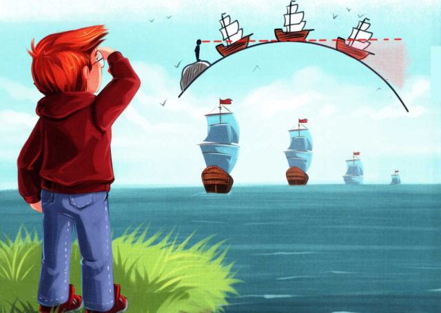 Входы в «волшебные» тоннели и выходы из них напоминают чёрные дыры. Но всё-таки это не чёрные дыры. Звездолёт, влетая в «кротовую нору», будет исчезать постепенно, а не сразу, как если бы он подлетал к чёрной дыре. Человек, наблюдая за удаляющимся в море кораблём, видит, как постепенно скрываются за горизонтом сначала палуба, а потом и мачта. Что-то похожее происходит, когда звездолёт, приблизившись к чёрной дыре, исчезает в ней, словно за горизонтом. На море удаляющийся корабль исчезает за выпуклостью нашей планеты, имеющей, как ты знаешь, форму шара.