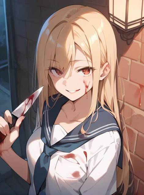 Мы все обернулись – и все дружно выпали. На фоне полуголых ведьмочек, воительниц, демониц и фурри-девочек моя милашка как-то слишком серьезно подошла к празднику. Не, на первый взгляд все смотрелось отлично: высокие гольфы до середины стройного бедра, школьная форма, причем японская, с невинной матроской и короткой игривой юбочкой. Вот только юбочка была испачкана чем-то красным, блузочка была испачкана чем-то красным, и на щеке, дополняя макияж, красовалась парочка алых всплесков, будто на нее попала бьющая фонтаном кровь. Откуда тут кровь? Ответ на этот вопрос давал солидный ножик в ее руке, завершавший косплей этакой классической яндере – причем не в начале аниме, а ближе к его концу, когда все мчится к кровавой развязке.