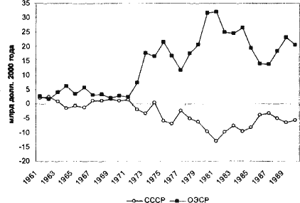 Сальдо торговли зерном СССР и стран-членов Организации экономического сотрудничества и развития (ОЭСР), 1961–1990 гг.