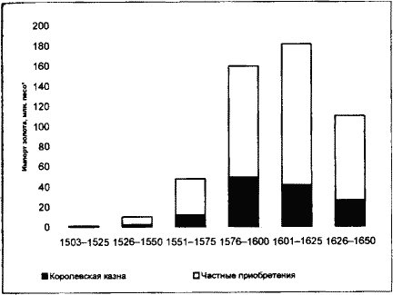 [Закрыть] Данные о поступлении драгоценных металлов в Испанию приведены на рис. 3.1.