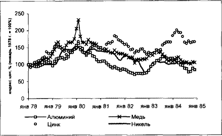 Помесячная динамика текущих цен на цветные металлы на мировом рынке в 1978–1984 гг.