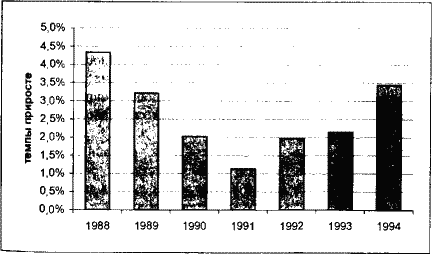 Темпы прироста мировой экономики в 1988–1994 гг.