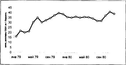 Помесячная динамика текущих цен на нефть на мировом рынке в 1979–1981 гг.