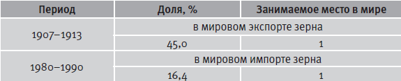Таблица 4.15. Экспорт зерна Россией в начале XX в. и импорт зерна СССР в конце XX в.