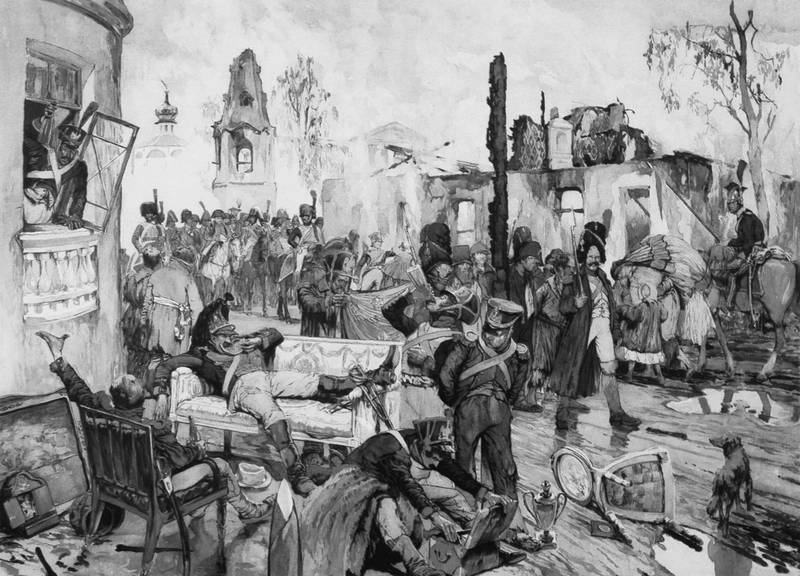 Наступил незабываемый для Русского государства 1812 г. В сентябре армия Наполеона заняла Москву и вступила в древний Кремль. Однако недолго пришлось торжествовать французскому императору, поскольку под неудержимым напором русских войск непобедимая ранее армия поспешно оставила русскую столицу. Покидая Москву, Наполеон отдал приказ взорвать Кремль, но исполнить это чудовищное намерение помешало мужество простых горожан. Взрывы на территории Кремля все же прозвучали: были разрушены Водовзводная, 1-я Безымянная, Петровская башни, а также звонница колокольни Ивана Великого. Пострадали Никольская башня и Арсенал. Несколько меньшие повреждения получили Боровицкая и Угловая Арсенальная башни. Все остальные здания были спасены и остались практически невредимы.