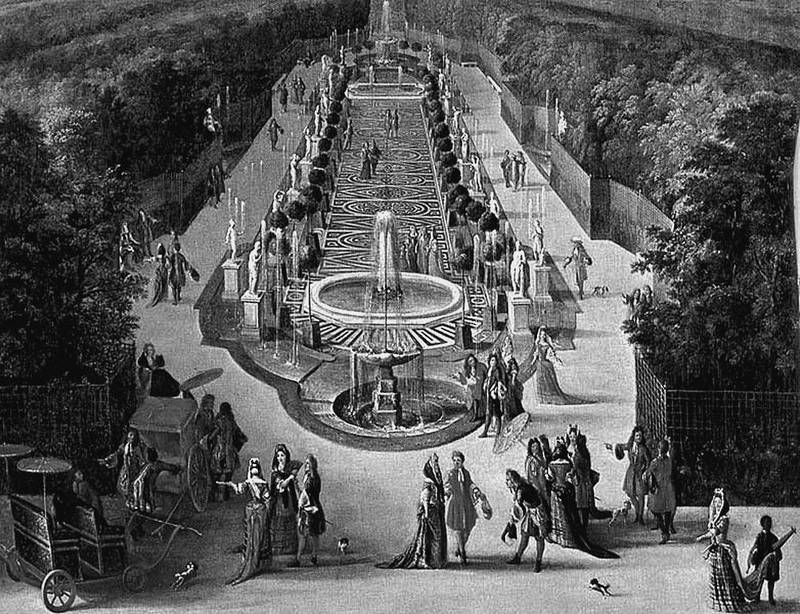 Придворные осмотрели и центральную аллею, по обеим сторонам которой сто фонтанов различной высоты образовали две прохладные водяные стены. С холма можно было увидеть панораму дворца с двумя симметричными крыльями, террасами, бассейнами, статуями, узорами из травы и цветов на фоне красного гравия. Каменные белки резвились между лапами больших львов с добродушными мордами. Король и придворные осмотрели все, вплоть до огородов и сада с апельсиновыми деревьями. Пиршество тоже было роскошным. Гостей ждали 80 накрытых столов, 30 буфетов с 6 тысячами тарелок и 400 серебряными блюдами. На столе, предназначенном для короля, находился сервиз из чистого золота. Впоследствии посуда из этого сервиза по распоряжению короля была переплавлена для оплаты расходов на Тридцатилетнюю войну.