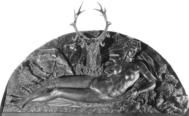 В 1562 году зодчий Филибер Делорм использовал этот рельеф для декора центрального входа замка Анэ. Рельеф изображает обнаженную нимфу, лежащую около источника. Ее голова украшена венком из цветов и фруктов. Правая рука нимфы обвивает оленью шею. Головка нимфы кажется особенно маленькой по сравнению с чрезмерно удлиненными пропорциями ее тела. В целом фигура создает впечатление изысканной красоты и обаяния, однако здесь нет характерного для итальянского Возрождения чувства внутренней силы. Таким образом, перед зрителем образ не реальный, а отвлеченный, в значительной мере идеальный.