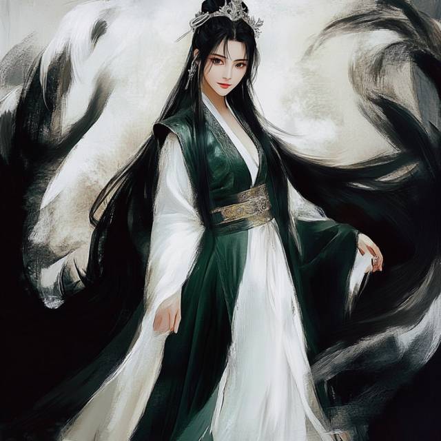 В нескольких шагах от меня стояла девушка, красивейшая из всех, кого я когда-либо видел. Её лицо, бледное в лунном свете, казалось вырезанным из белого нефрита – настолько идеальные черты, настолько безупречная кожа. Длинные чёрные волосы были украшены серебряными шпильками с подвесками, которые тихо звенели при малейшем движении. Одежда – изысканное платье из шёлка цвета ночного неба, расшитое серебряной нитью, – плотно облегала стройную фигуру. В руках девушка держала небольшой свёрток.