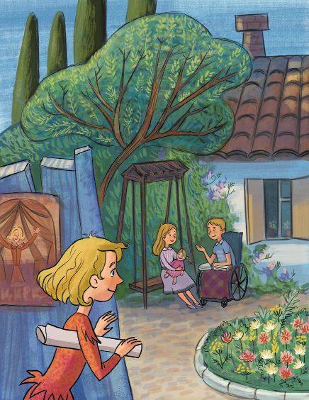 Лика остановилась возле низенького забора вокруг одного из домов. Аккуратненький домик с коричневой черепичной крышей, маленький, но красивый садик. В саду стояла беседка с качелями. На качелях сидела девочка чуть постарше Лики. В руках у неё была кукла с розовыми бантиками в волосах. У Лики никогда не было такой куклы. Да, впрочем, у неё никаких игрушек не было, Дито и Кама не разрешали ей играть. Зато у Розы были и куклы, и мягкие игрушки, но она не очень любила давать их Лике… Девочка в саду качалась на качелях, заплетая кукле косички. Рядом с качелями стояло кресло с большими колёсами. В нём сидел мальчик лет двенадцати и читал вслух книгу. Ноги его были укрыты коричневым клетчатым пледом.