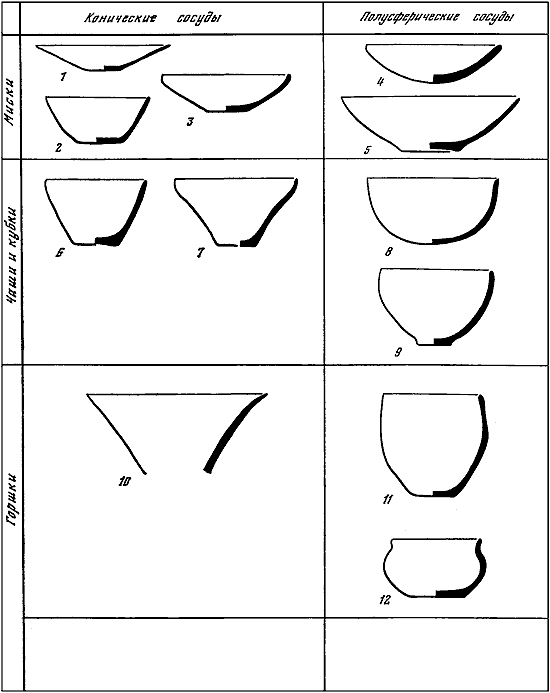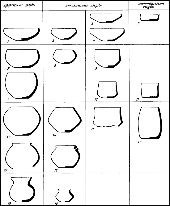 Таблица II. Типы форм энеолитической керамики Средней Азии.