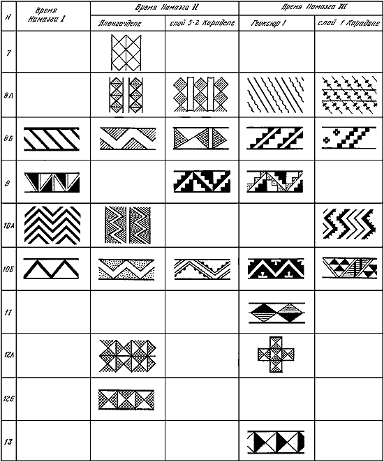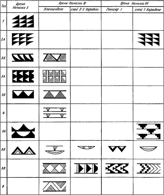 Таблица IV. Типы орнаментальных композиций энеолитической керамики Средней Азии.