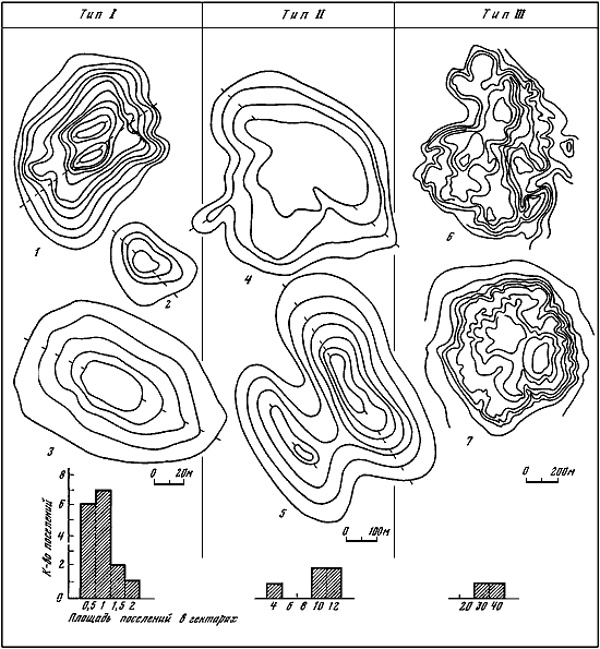 Таблица VI. Типы энеолитических поселений Средней Азии.