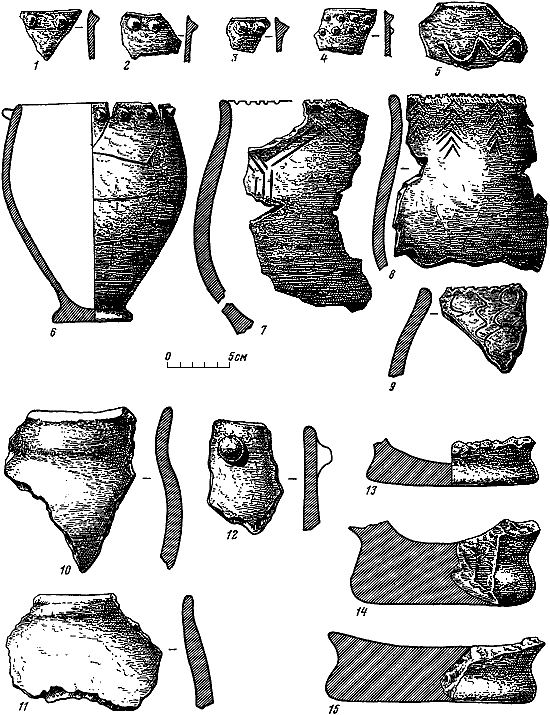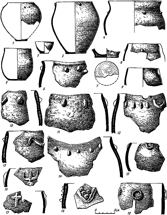 Таблица XXXIX. Керамика горизонтов IV–I Имирисгора (1-19).