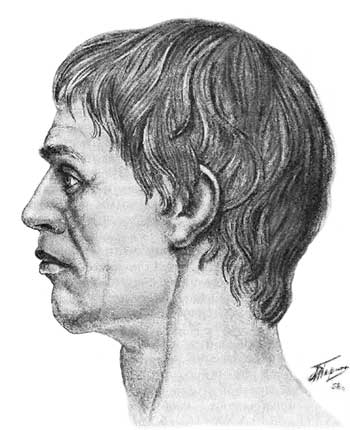 Рис. 15. Графическая реконструкция внешнего облика мужчины по черепу из погребения 19 Выхватинского могильника (по М.М. Герасимову).