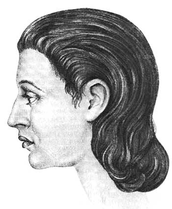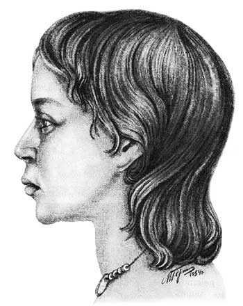 Рис. 16. Графическая реконструкция внешнего облика женщины по черепу из погребения 35 Выхватинского могильника (по М.М. Герасимову).