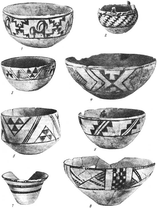Рис. 3. Керамика Карадепе (1–3, 5–8) и Геоксюра 1 (4).