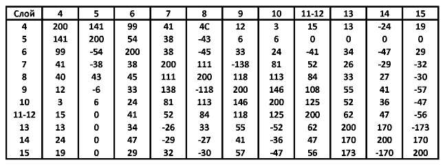 Таблица 5. Коэффициенты сходства разных групп керамики по слоям на раскопе 1 Алтындепе.