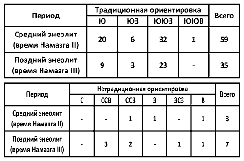 Таблица 7. Ориентировка энеолитических погребений.