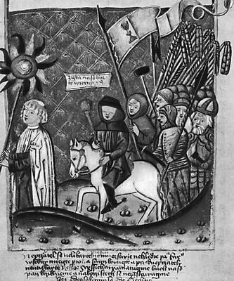 Легенда гласит, что мать произвела его на свет во время страшной бури прямо под огромным дубом. «Ян Жижка из Троцнова, слепец недоброй памяти, здесь народился» – такая надпись была сделана в небольшой часовне, стоявшей на этом месте. Разумеется, часовня была католической – у правоверных католиков не было оснований хранить добрую память о еретике. Говорят, до того, как стать еретиком, он был разбойником. В те времена немало лихих банд промышляло на дорогах королевства. В судебной книге князей из Рожмберка за 1406 год можно прочитать: «…А о Жижке Ян Голый говорил, что Жижка, некий Йиндржих и брат Жижки взяли рыбу и другой груз из обоза… А Матей у купцов отобрал деньги, а Жижка убил одного из слуг». В 1409 году жителям города Ческе-Будейовице удалось поймать и повесить многих налетчиков. Жижке помог уйти от виселицы сам король Вацлав. Почему – никому не известно. Именно после этого счастливого избавления одноглазый Ян (говорят, первый глаз он потерял еще в детстве) уезжает в Польшу, чтобы участвовать в битве при Грюнвальде. А разгромив тевтонцев и вернувшись на родину, Жижка начинает придворную карьеру в свите супруги Вацлава IV – Софии. Каким ветром занесло его к Новоместской ратуше, неизвестно, но, судя по всему, он был одним из лидеров восстания, ибо в скором времени его назначают предводителем пражского войска.