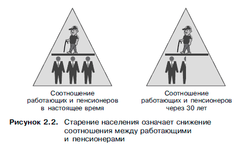Сокращение населения приводит к уменьшению рабочей силы, а это, в свою очередь, – к снижению доходов (в виде налогов и взносов в государственные пенсионные фонды) правительства. Обе эти тенденции, видимо, сохранятся в течение последующих 50 лет, так что если правительства не предпримут оперативные меры, проблема лишь обострится.