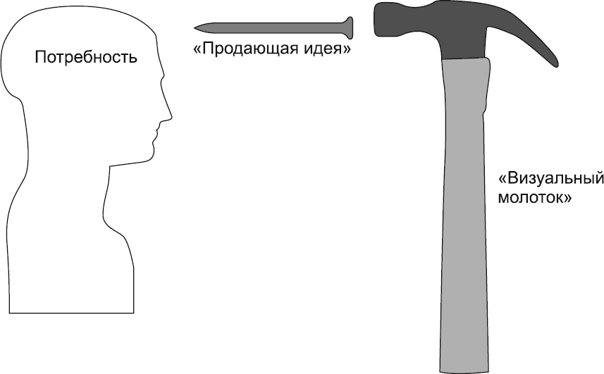 Напомним об их функциональной взаимосвязи: гвоздь продающей идеи забивается в сознание потребителей визуальным молотком.