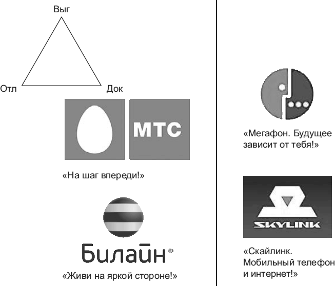 Предлагаем потренироваться в использовании Треугольника-предсказателя Райса – Траута – Лукьяновой и определить эффективность рекламных слоганов известных российских брендов мобильной телефонной связи.