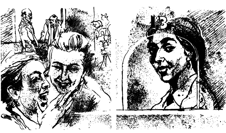 Единственнов медленно подходит к ним. Он не знает, как держать себя с этими насмешливыми и дерзкими женщинами.