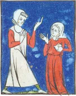 Женщина приходит на гинекологический осмотр Миниатюра из медицинского трактата XIV в.