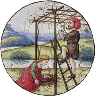 после того, как натаскали дрова или задали корм скотине. В марте обрезали деревья, крестьяне вспахивали поля и готовили землю к посевам. Апрельские картины изображали, как крестьяне засевают поля или выгоняют на пастбища скотину, а знатные господа и дамы тем временем собирают в полях цветы и любезничают друг с другом. В мае знать отправлялась на соколиную или псовую охоту. В июне начинался сенокос; в июле и августе – сбор урожая пшеницы, тогда как в некоторых вариантах июль представлен также картинами с изображением стрижки овец. В сентябре собирали виноград и делали вино. В октябре поля вспахивали под посадку