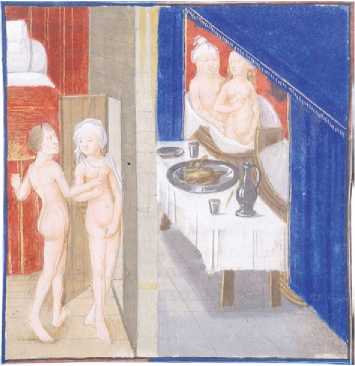 Миниатюра с обнаженными парами,символизирующими вожделение Из манускрипта Facta et Dicta Memorabilia