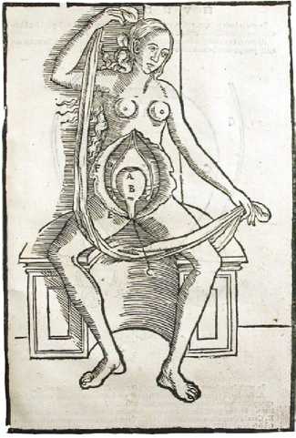 Женская репродуктивная система Гравюра из книги Anatomia Mundini, Ad Vetustis. 1541 г.