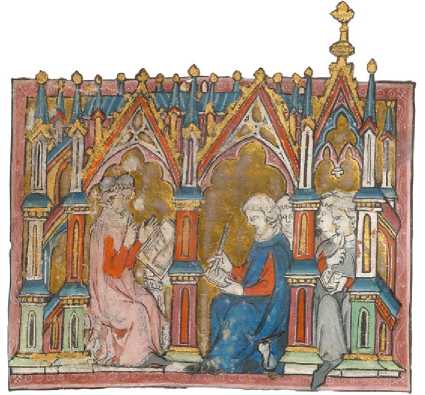 Студенты слушают лекциюМиниатюра из «Книги сокровищ» Брунетто Латини