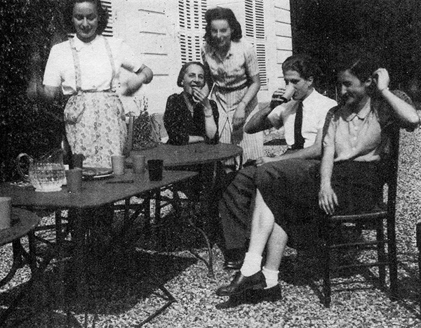 Слева направо: Элен Берр, Антуанетта Берр, Дениза Берр, Жан Моравецки и Жаклин Жоб. Обержанвиль, лето 1942 г.
