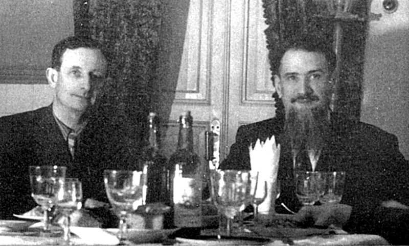 Юлий Харитон и Игорь Курчатов отмечают первое успешное испытание атомной бомбы, 29 августа 1949 г.