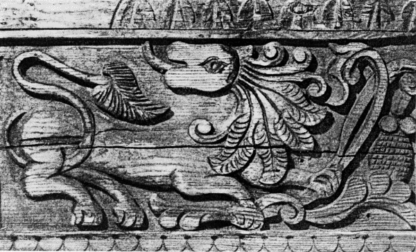 Фантастический зверь. Деталь украшения избы. Заволжье Середина XIX века